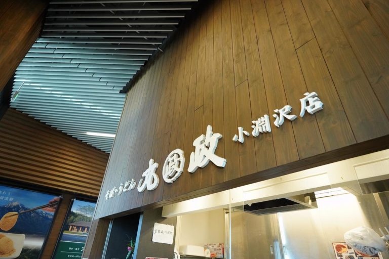 やってきたのは改札口のすぐ横にある駅そば「丸政そば」です。ここの山賊そばと馬肉が美味しいというので食べてみることに。