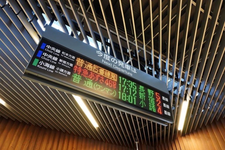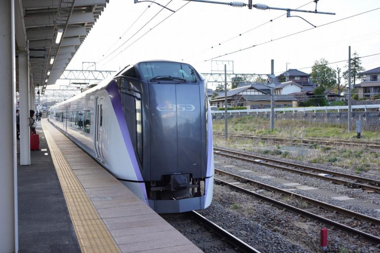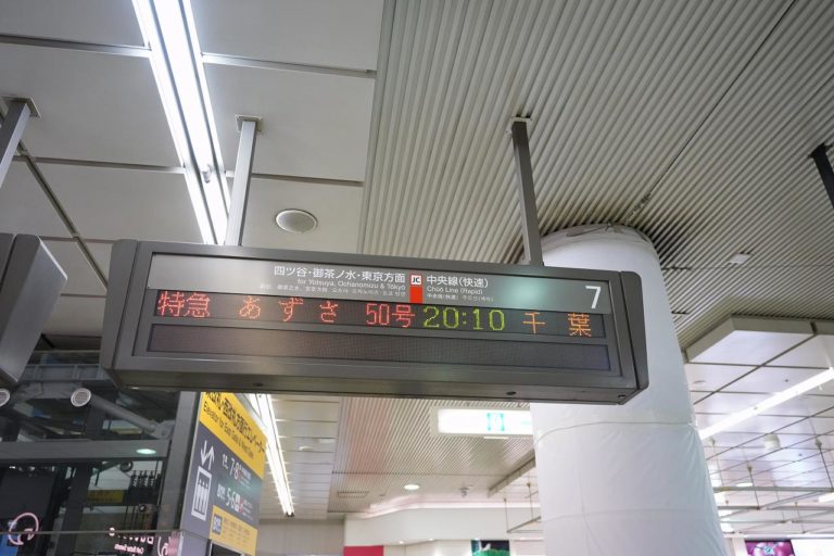車両はE353系。中央線特急は在来線特急の中でも需要が多い路線なので、新型の特急車両が導入されています。全席コンセントも付いてるし、乗り心地も快適なので好きな車両です。