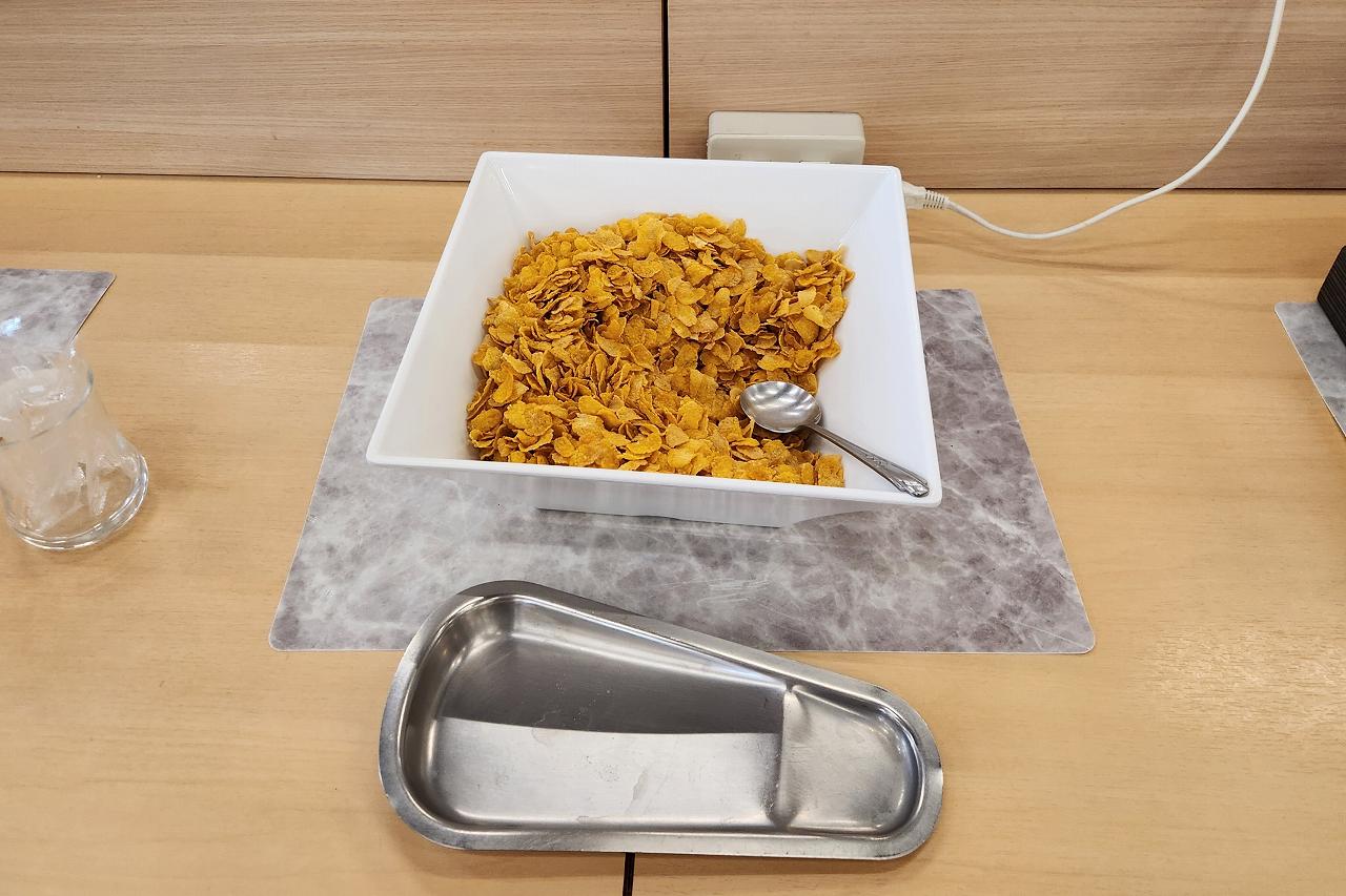 シリアルとヨーグルト。コーンフレークって最近あんまり食べなくなったなぁ。