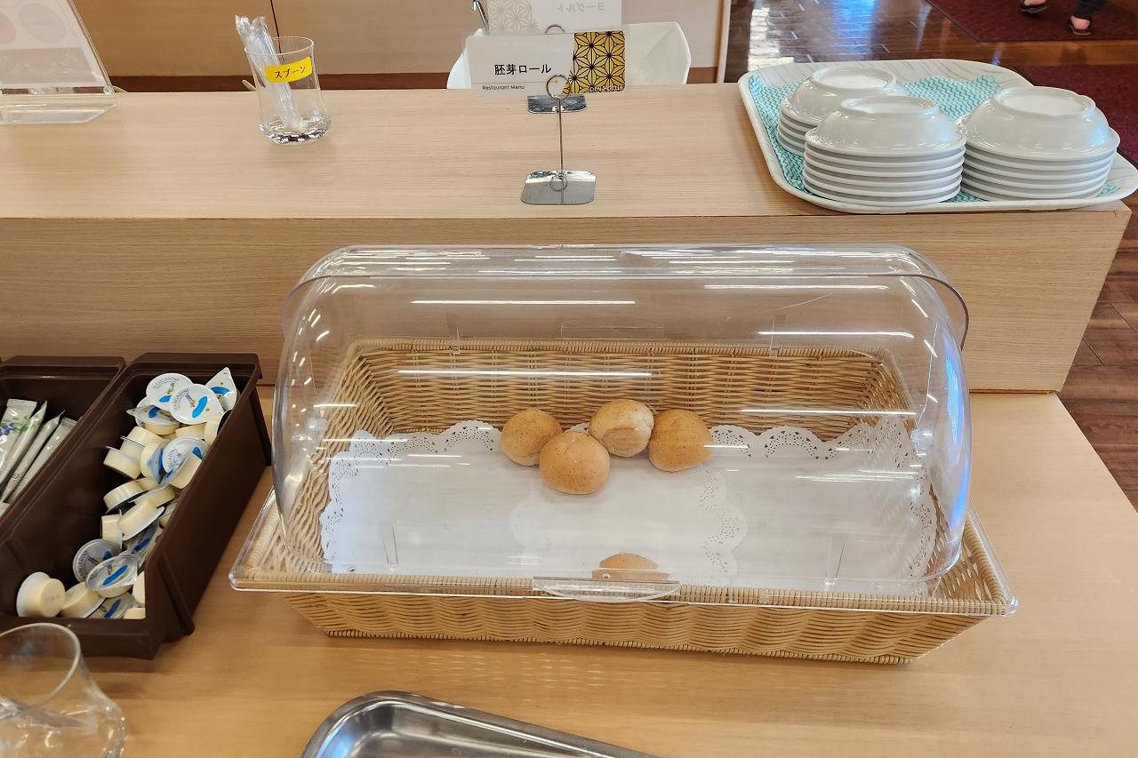 パンは胚芽ロールと食パンがありました。ジャムなども色々用意されているので、お好みで乗せて食べましょう。