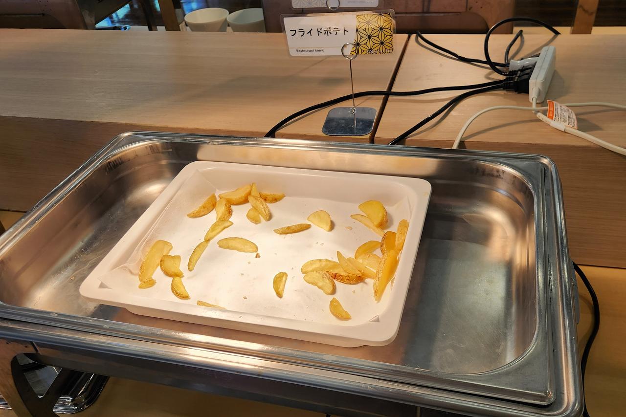 ここからは洋食コーナー。白身フライにフライドポテト。