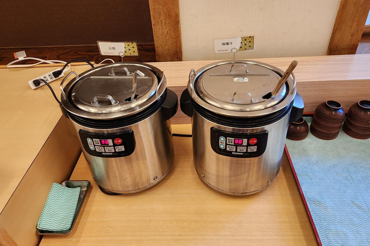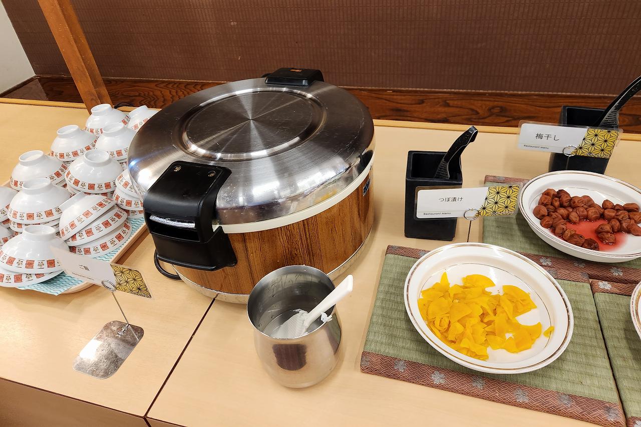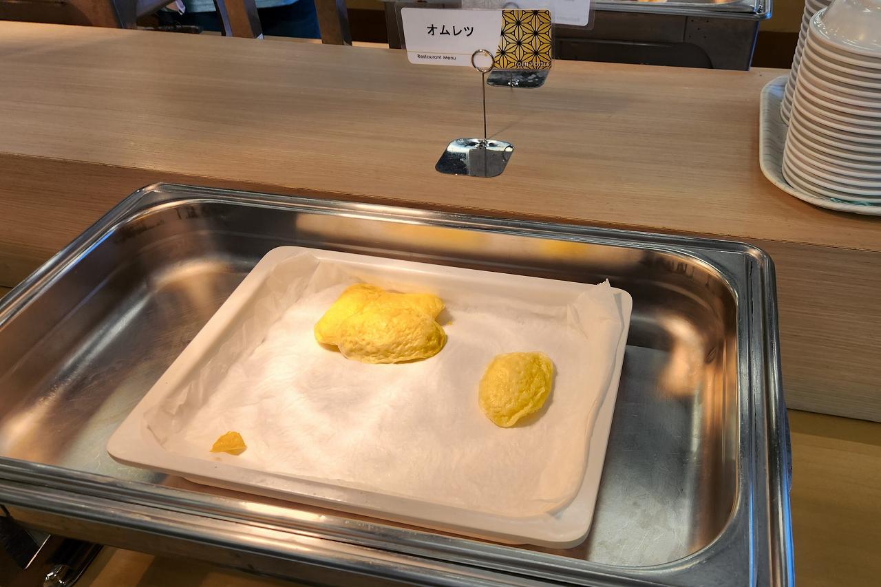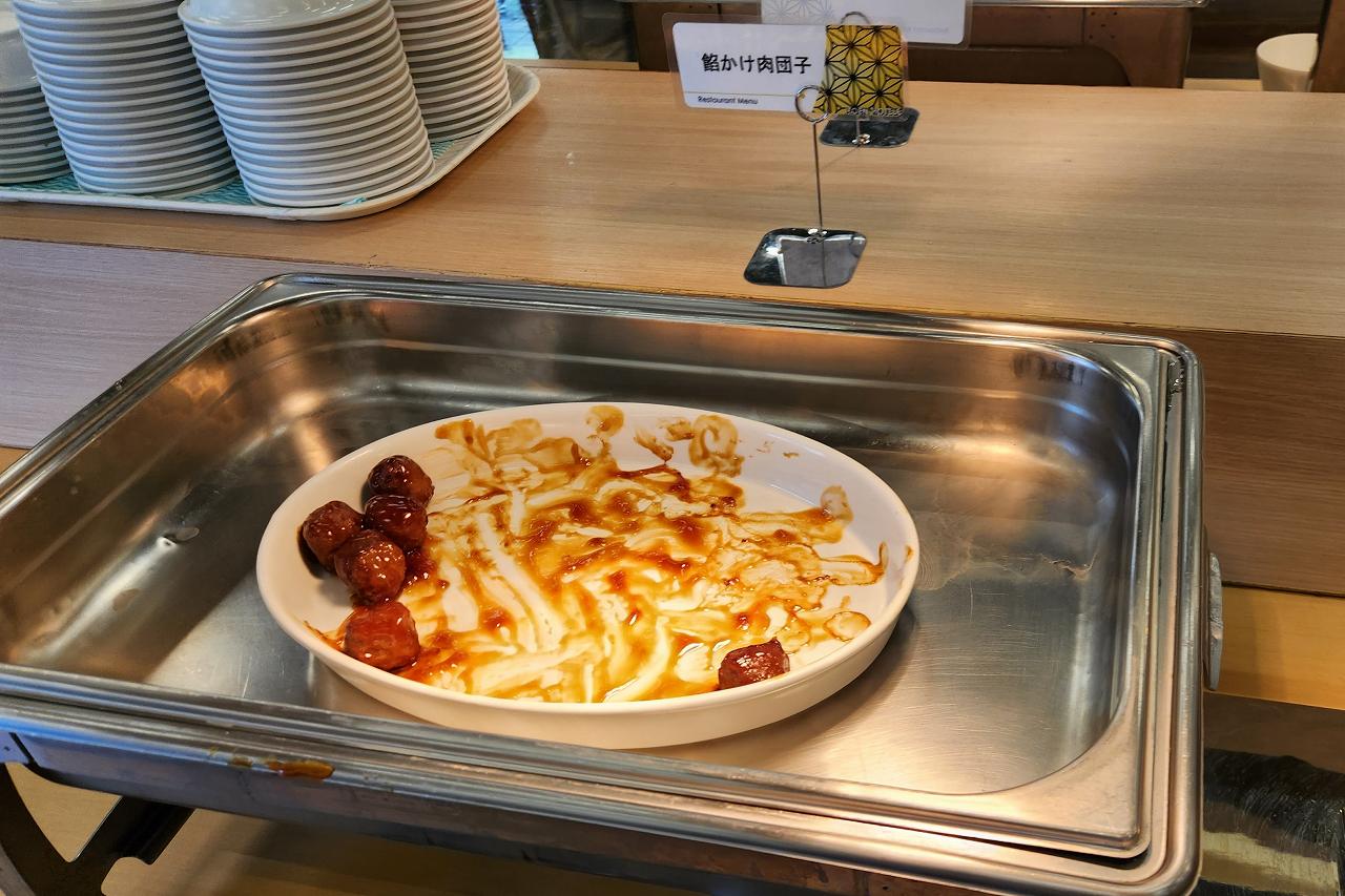 昨晩はラーメンとそばがあった麺コーナー。朝はシンプルにうどんだけが用意されていました。朝食にうどんがあるのは香川県みたいな雰囲気。