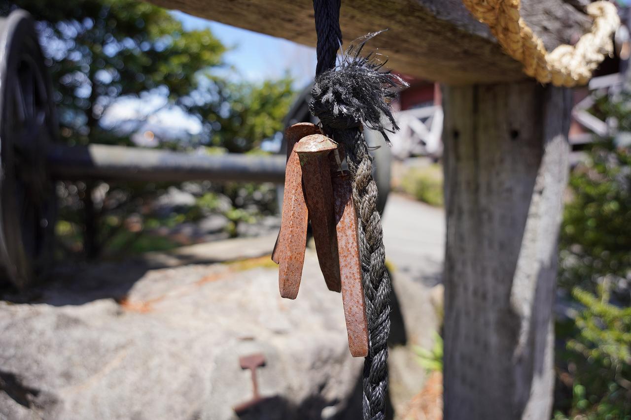 ここのめずらしいポイントとして、神社にある鈴の代わりに枕木を止める釘が使われていること。鳴らすと思った以上にいい音が鳴り響きます。