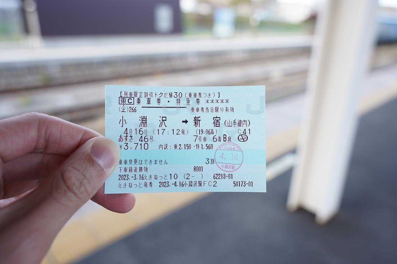 無事に撮影を終えて小淵沢駅へ。天気もよく快適に過ごせる一日でした。あとは帰るだけですが、今回は普通列車ではなくトク30のあずさを確保しているので快適な帰宅です。