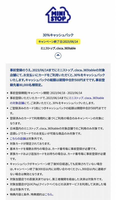 今回の対象店舗はミニストップとコメダ珈琲店。双方とも還元上限は500円までなので、1,666円までの利用が30%還元されます。キャンペーンは先着順で、ミニストップが先着8万名、コメダ珈琲店が先着10万名となっています。