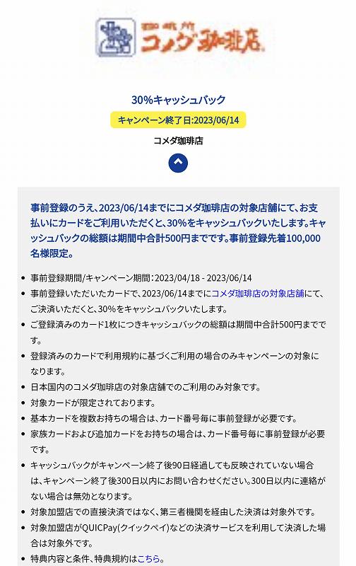 定期的にいいお店が出ているセゾンアメックスのキャッシュバック特典ですが、今回はミニストップとコメダ珈琲店が登場していました。ミニストップは以前もありましたが、コメダ珈琲も初登場。シロノワールとか食べに行こうかな……。