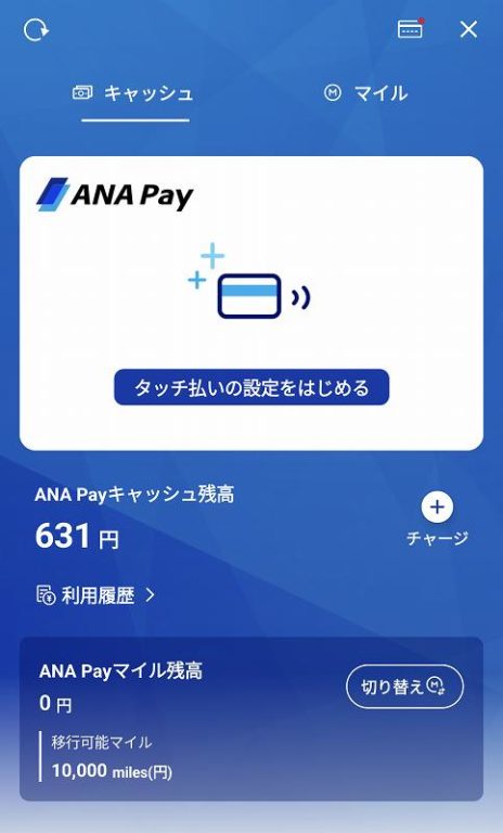 ANA Pay(タッチ決済)を利用するためには、あらかじめANAマイレージアプリが必要です。ダウンロードしてない人はまずダウンロードとログインを行っておきましょう。