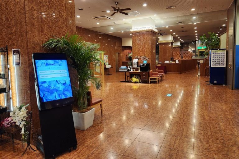 ロビーはシティホテルのように広々しています。奥のスペースはレストランとなっていて、朝食会場のほかにも団体での食事を受け付けているらしい。