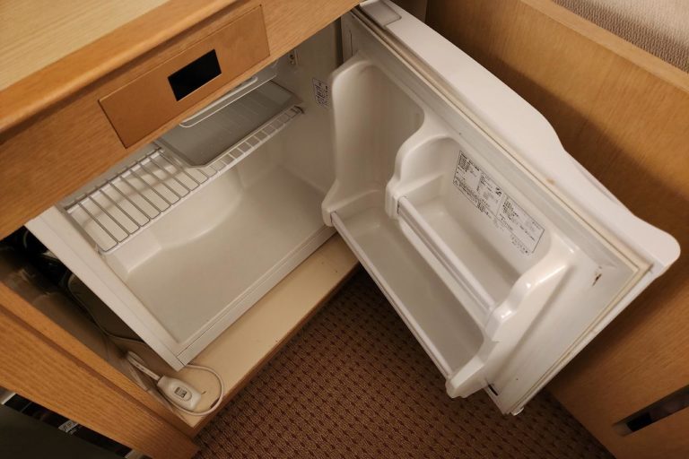 冷蔵庫は空っぽで、節電のためかスイッチが切られています。飲み物入れておいたら全然冷えてなかった!ということを防ぐために、スイッチは確認しておきましょう。