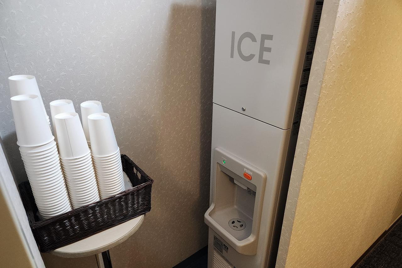 製氷機は無料で利用可能です。ウェルカムコーヒーを冷やして飲むってのが結構好き。アイスコーヒーのが好きなんですよね。