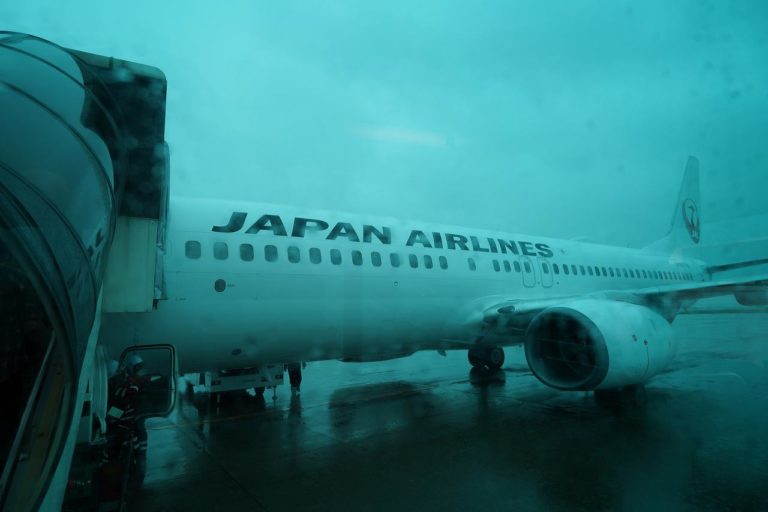 バスで移動して搭乗するの、飛行機の写真が撮れるのは良いとしてこんな悪天候の日だと最悪な感じ。濡れないように近くに寄せてくれたけどね。