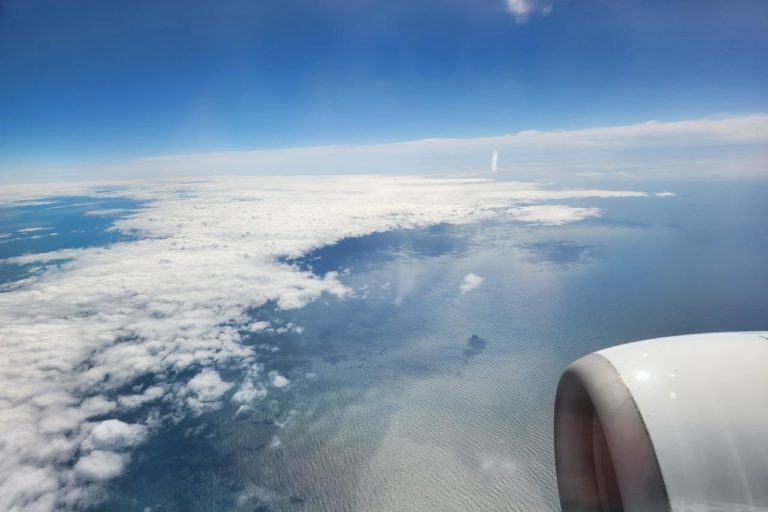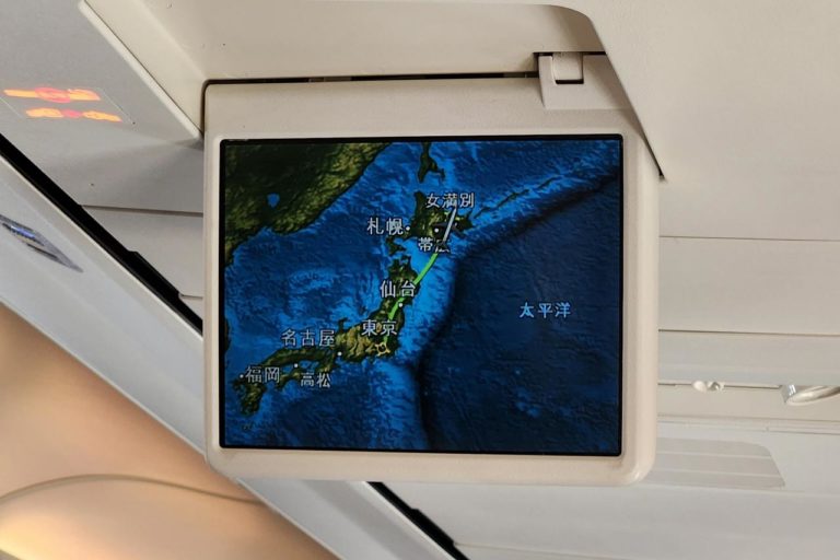 機内では離陸前から即就寝。出来る限り睡眠時間を確保しようと寝てました。そして起きたら十勝平野の下あたりに。ここは天気良い?晴れてる?と期待が高まります。