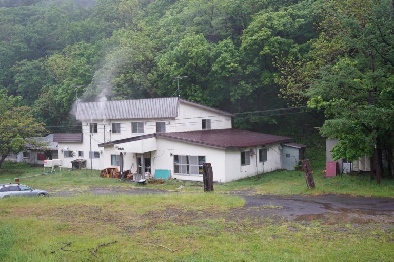ウトロを出発して知床半島の奥地に進むと、途中に「岩尾別」と書かれた建物があります。これは岩尾別ユースホステルという宿の跡地なのですが、何かに使われているようで人の出入りが見受けられます。