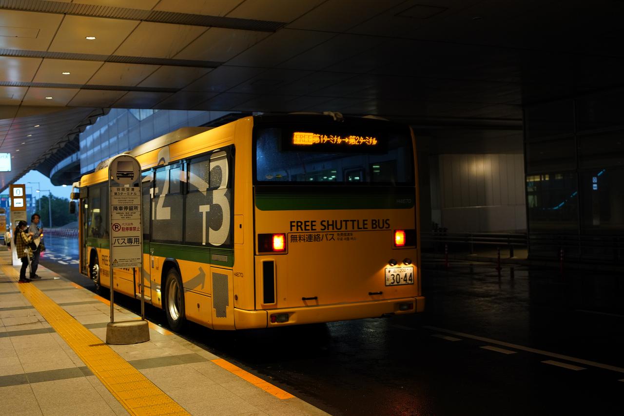 そうして5時も過ぎたので、ターミナルの連絡バスで第1ターミナルへと向かいます。ターミナルの間は無料の連絡バスがあるので、モノレールや京急に課金しなくても移動が可能です。