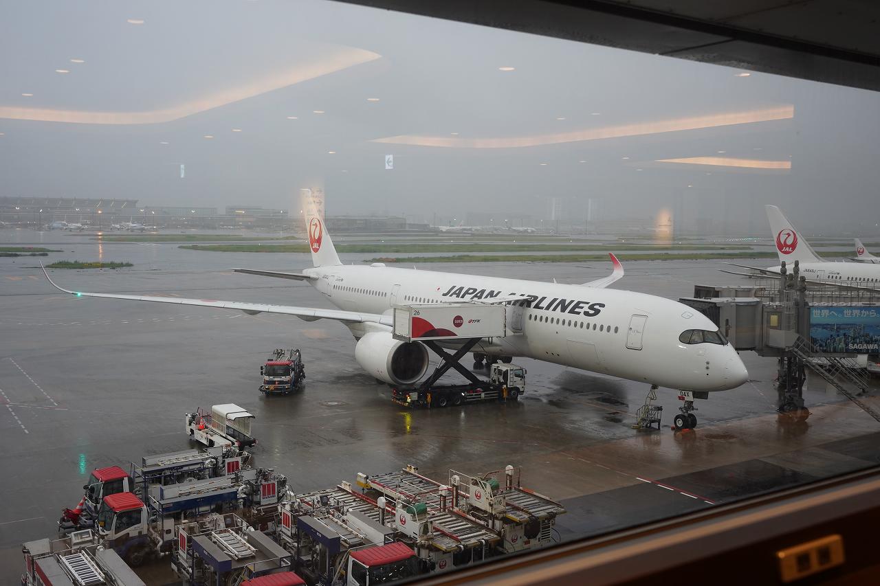 バスで移動して搭乗するの、飛行機の写真が撮れるのは良いとしてこんな悪天候の日だと最悪な感じ。濡れないように近くに寄せてくれたけどね。