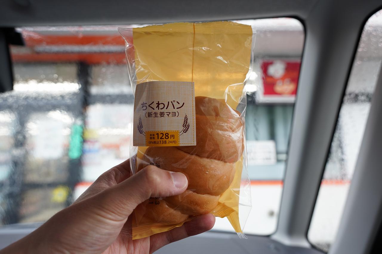 道の駅の少し先にあるセイコーマートで、ちくわパン(新生姜マヨ)を購入。これは岩下の新生姜とのコラボ商品で、中に入っているちくわに新生姜マヨが入っています。