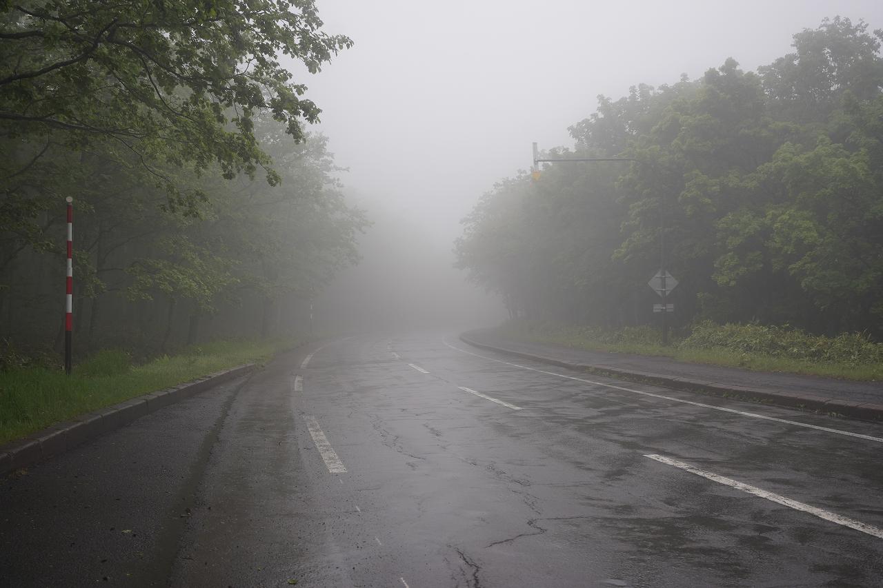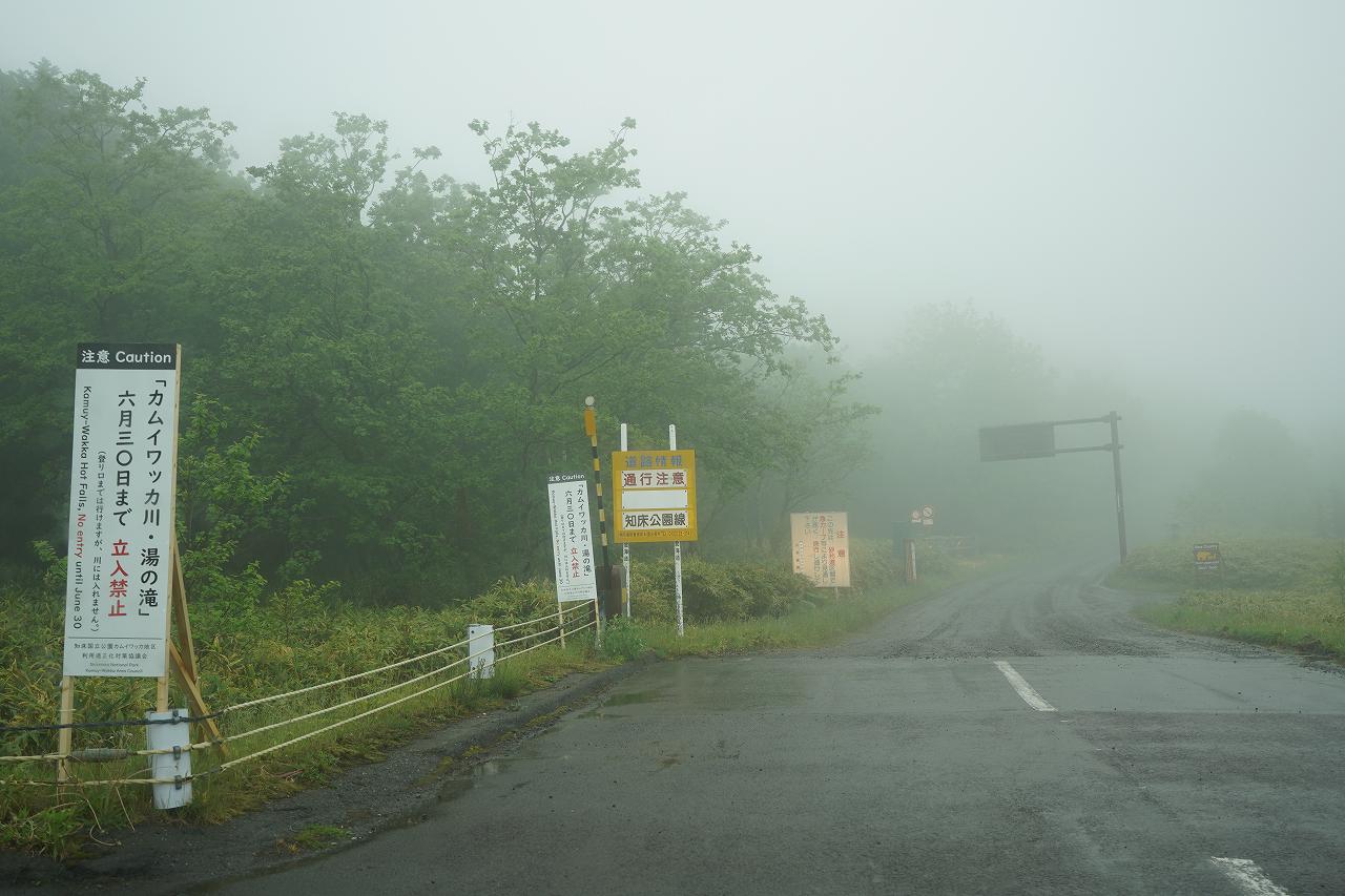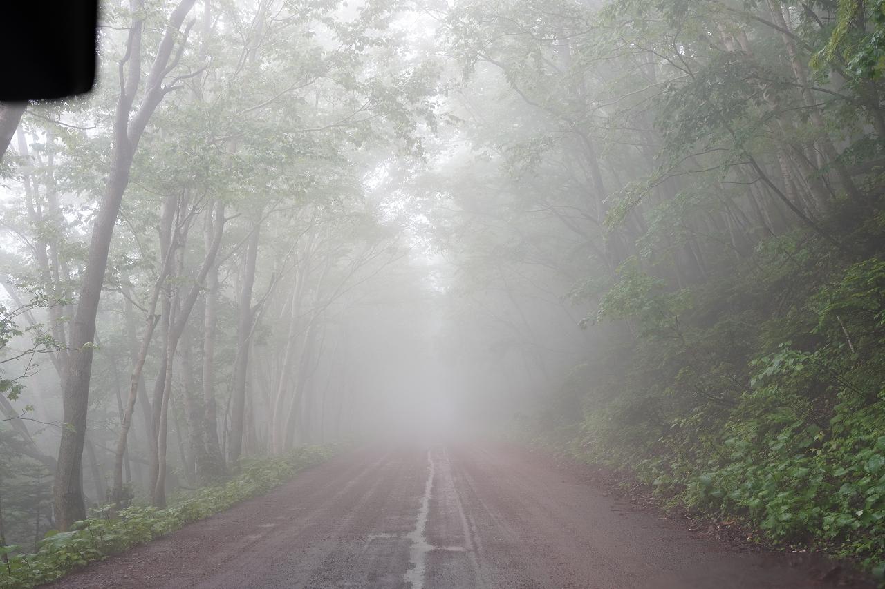 帰りも砂利道を走って、ようやく舗装路に戻って一安心。しかし行きよりも格段に霧が濃くなっているのが気になります。元々は知床横断道路を走行して羅臼に抜ける予定だったのですが、知床横断道路って霧が濃いとかなり危ないのは以前経験済み。そして時間もあまり多くないので、素直に戻って川湯温泉を目指したいと思います。