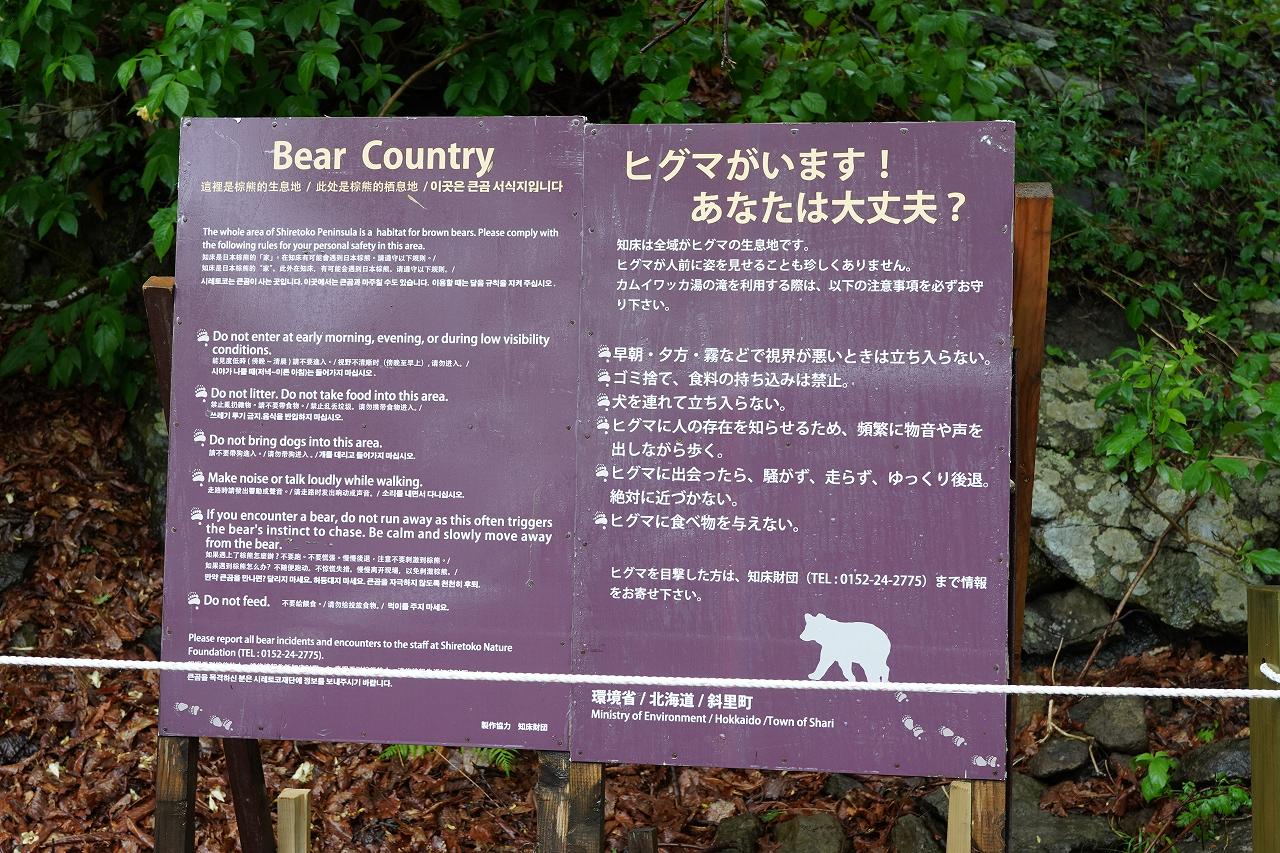 そしてもう一つ。ここはヒグマの生息地です。川に入るにしろ、川を見るにしろ、周囲にクマが居ないかを十分に確認しておきましょう。車の中ならまだ安全ですが、出て生身では勝ち目はありません。