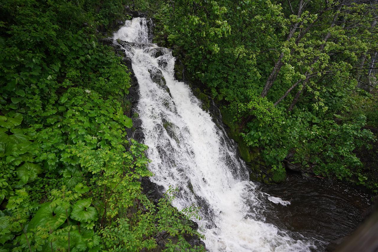 知床とウトロをつなぐ国道334号線沿いには、2つの滝があります。まずはちょっと小さ目な三段の滝。