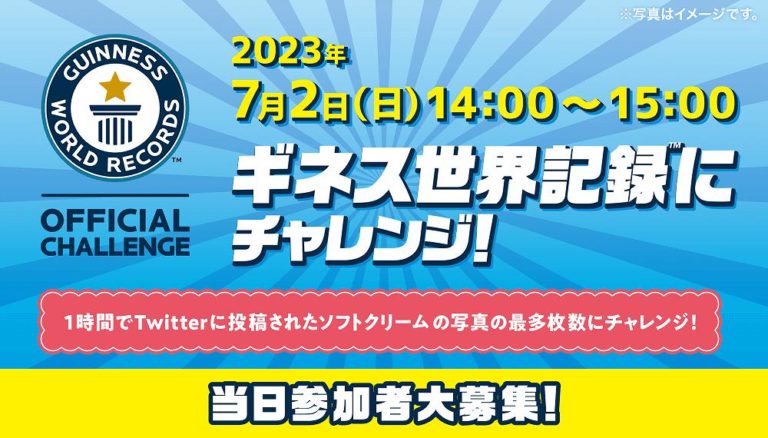 ギネス記録ってめちゃくちゃいろいろあるのですが、今回ミニストップが挑戦するのは「1時間でTwitterに投稿されたソフトクリームの写真の最多記録」というギネス記録。そもそも既に記録があるのかよくわかりませんが、要はみんなでソフトクリームを写真を上げれば良いみたいです。
