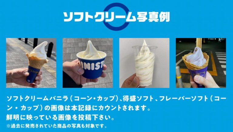 なお対象となるソフトクリームはミニストップで販売されているものとなり、期間限定などで現在発売されてないものも対象。コーンでもカップでも得盛でも問題ありません。
