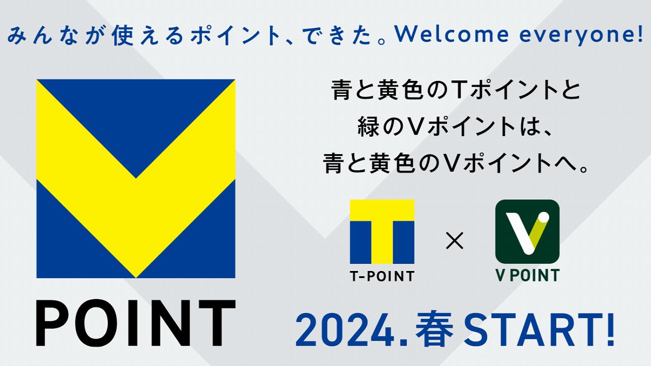長々と歴史のあった「Tポイント」という名前がなくなり、「Vポイント」に統合されるというのが若干驚きのある発表。Tポイントは青と黄色のデザインとして残ることになります。