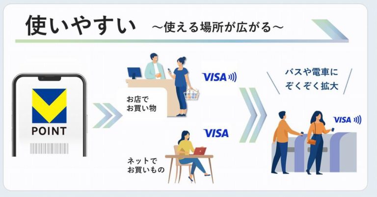 最近始まったOliveでは、Vポイントをカード支払いに使用することも可能です。そのため、チャージなどの概念なくポイント加盟店でもVisaが使える店でも「青と黄色のVポイント」を使えるようになります。