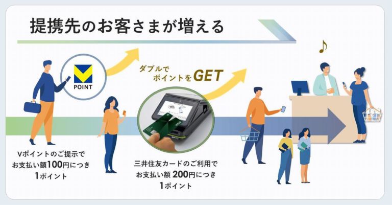 新しいVポイントの加盟店で三井住友カードを使うとどちらも貯まるという内容ですが、一つのポイントを貯めることでポイントが分散してしまうということは防げそうですね。