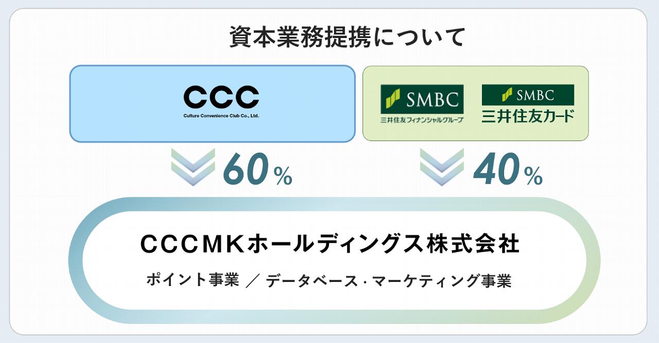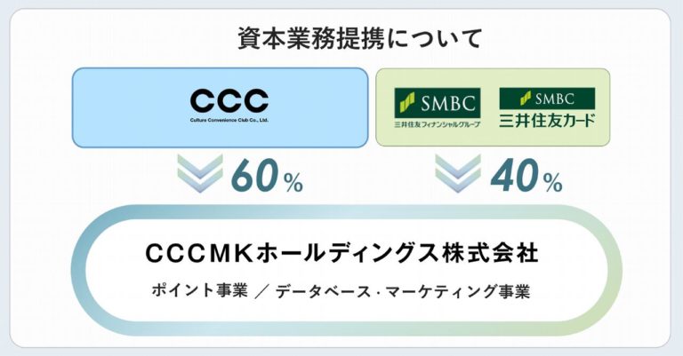 なお新規に設立されるCCCMKホールディングスは、CCCが60%、SMBCが40%の出資になっています。それなのに名前はVポイントなんですね……。