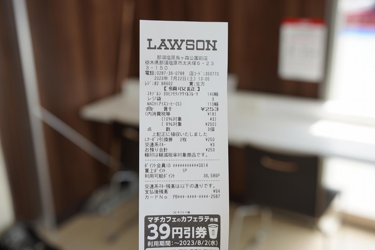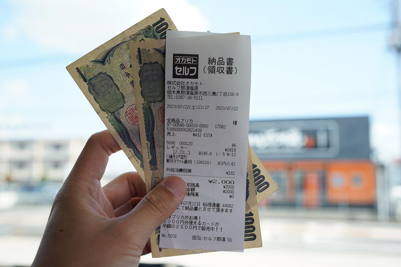ここの地域クーポンの仕組みは、何でもいいから支払いをしてレシートを持参し、地域クーポンを提示すると地域クーポン分が現金で返ってくるという謎な流れ。セルフスタンドだから先払いしてもらうしかないんでしょうね。