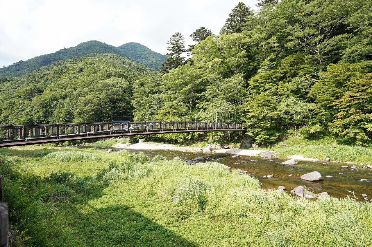 食後は塩原温泉に来ていた知り合いに会うために塩原もの語り館へ移動。車で2分ほどの距離で、歩いて行っても10分かからないと思います。裏手には吊り橋もあって、涼しい風を感じながら「これが理想的な夏だよ」と思える光景と気温がそこにあります。