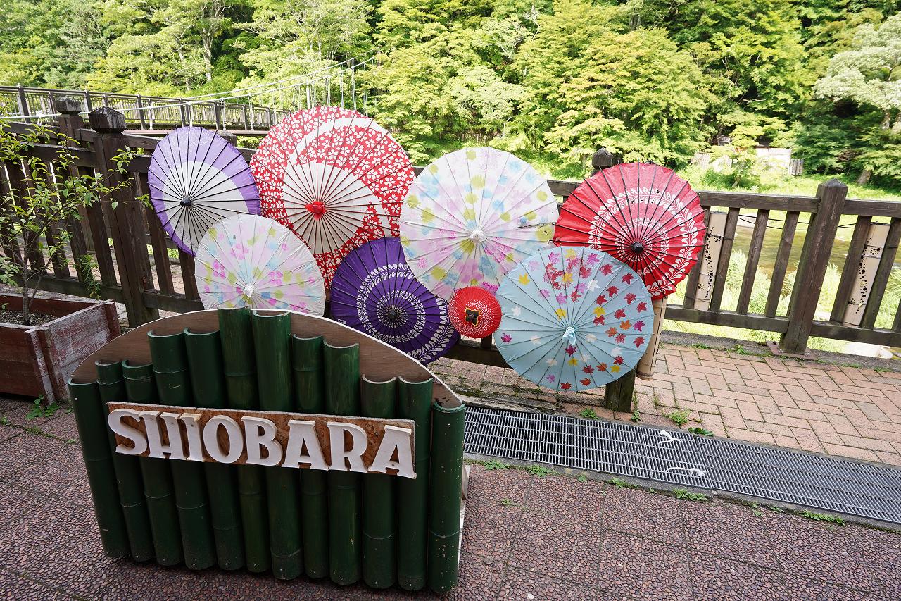 塩原の記念撮影ができるスポット。和傘が華やかです。