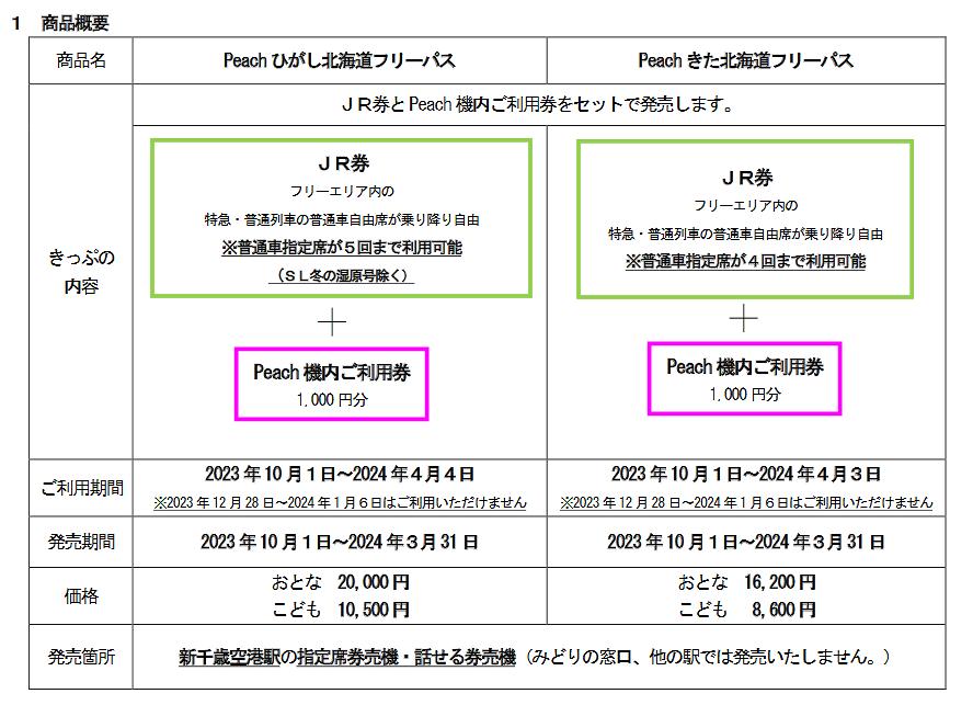 「Peachひがし北海道フリーパス」、「Peachきた北海道フリーパス」を継続して発売します!~普通車指定席がご利用可能となり、より便利で安心してご乗車いただけます~