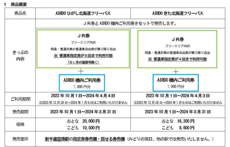 「AIRDOひがし北海道フリーパス」、「AIRDOきた北海道フリーパス」を継続して発売します!~普通車指定席がご利用可能となり、より便利で安心してご乗車いただけます~