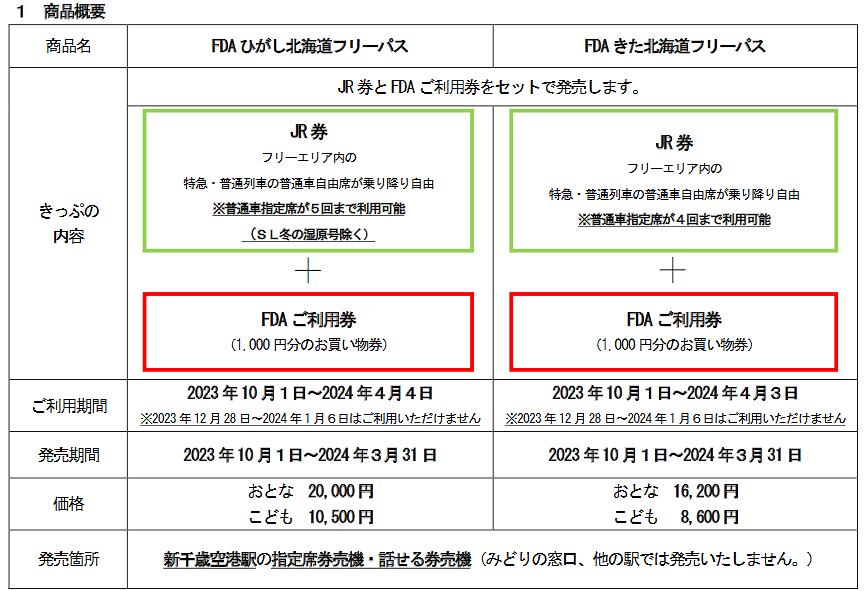 JR北海道・FDAタイアップ商品「FDAひがし北海道フリーパス」「FDAきた北海道フリーパス」を継続販売します!~普通車指定席がご利用可能となり、より便利で安心してご乗車いただけます~