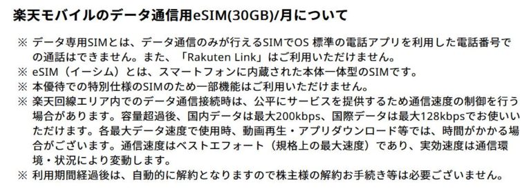 株主優待が楽天キャッシュから楽天モバイルのeSIMへ