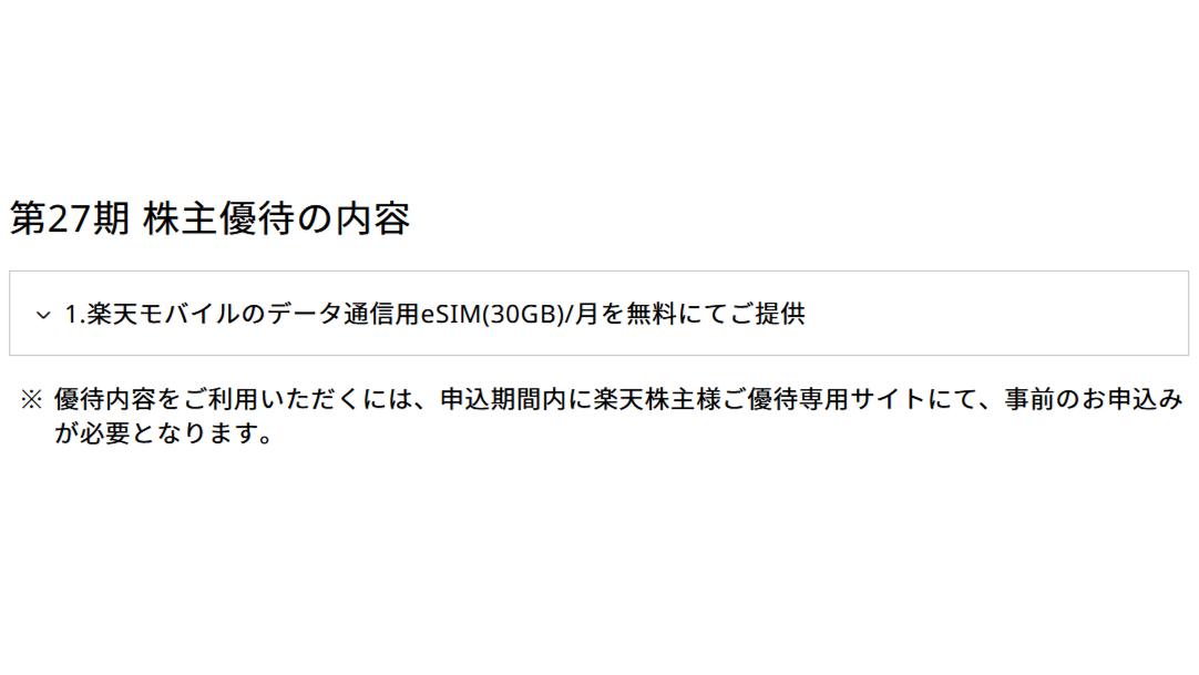 株主優待が楽天キャッシュから楽天モバイルのeSIMへ