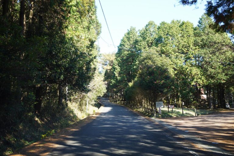 山頂へと向かう道はしばらくは2車線だったり1車線でも広々とした道幅。でもそれは「国立諫早青少年自然の家」までです。