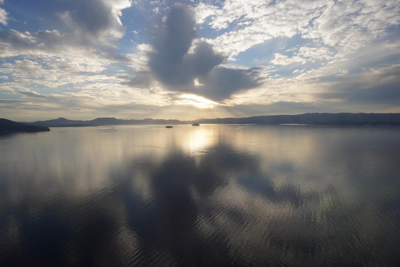 高台の道路から大村湾を一望できた