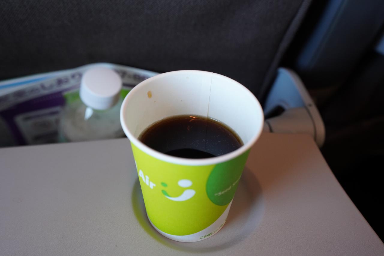 機内ドリンクはホットコーヒー。でも結局眠いのは変わらずでしばらくスヤスヤしてました。