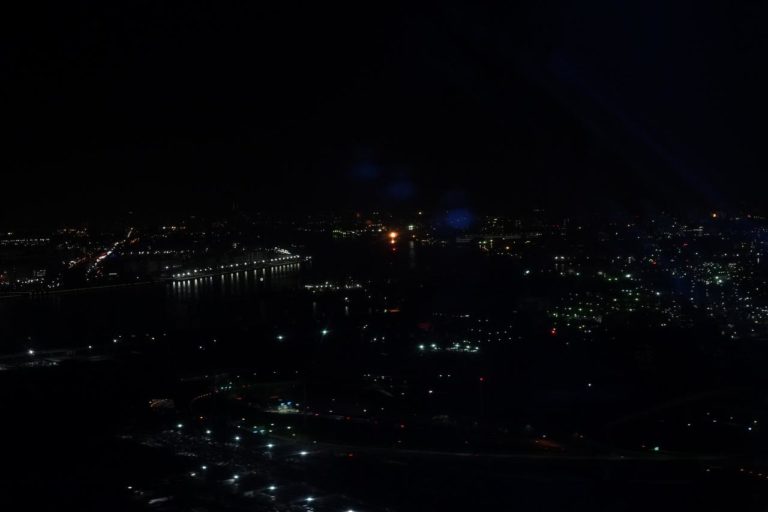 スヤスヤ→電子書籍→スヤスヤを繰り返して気づいたら東京上空。いつの間にか夕暮れも早くなって、18時前だというのに真っ暗です。