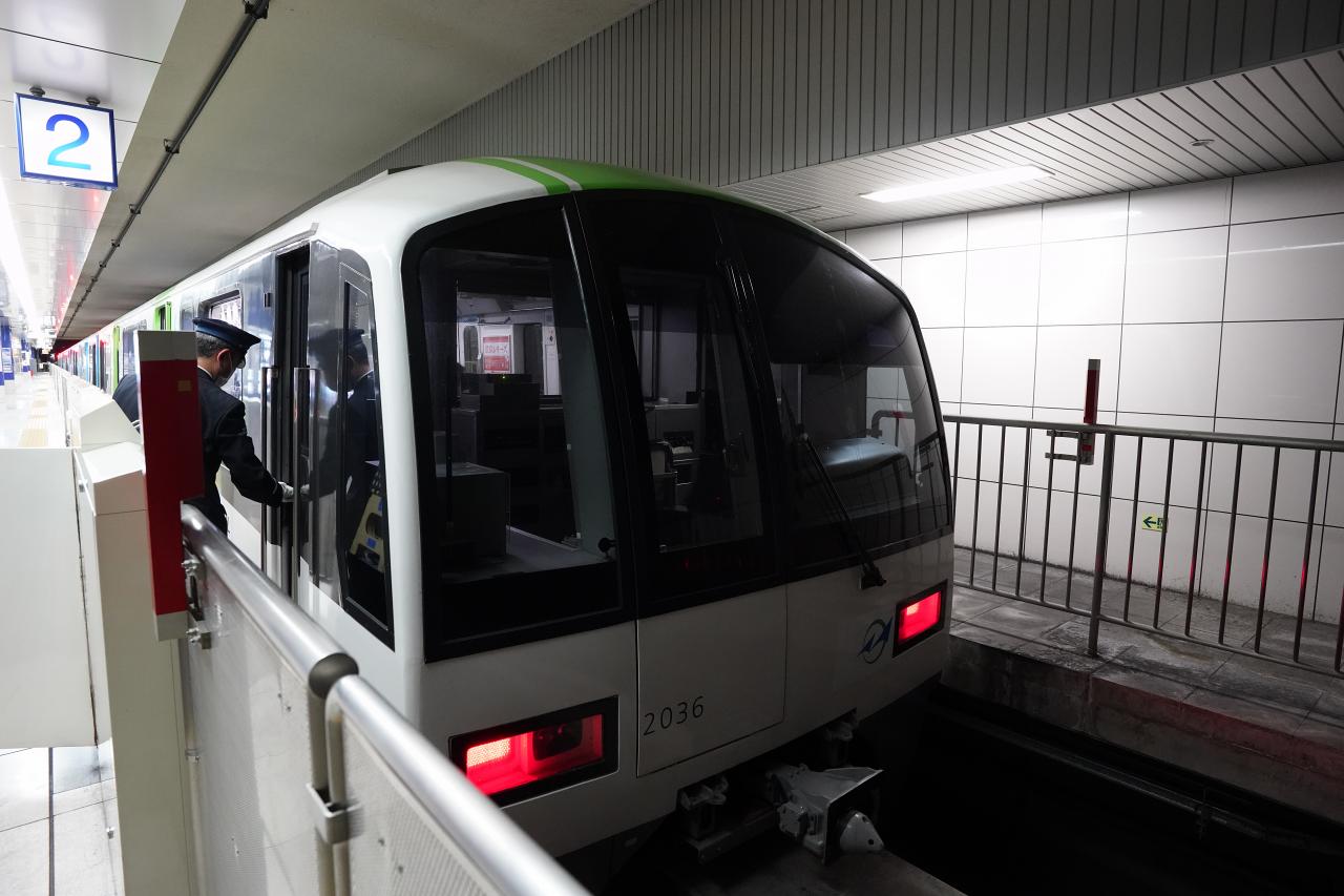 車両は2000系でした。そういえば東京モノレールは無人運転ではないので、かぶりつき席みたいなのはないんですよね。