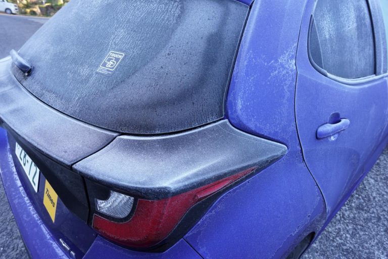 車に向かうと朝の寒さで一面真っ白に。北海道のようにドアが凍って開かない!なんてことはないですが、ウォッシャー液も凍ってしまっていてフロントガラスを溶かすのに少し時間が掛かりました。でも昼間は18℃とかになるので、温度差が大きすぎる。