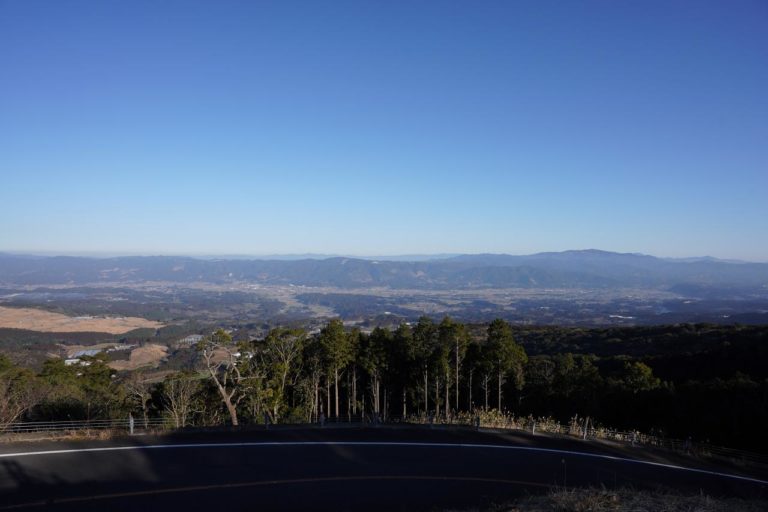 展望台からの眺めはこんな感じ。少しの平地の部分にお家が建ってるのがよくわかります。でもなんか「えびの市」って「えびな市」と間違えそう。