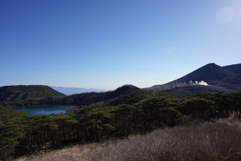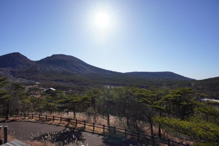 えびの高原展望台からは硫黄山や韓国山を眺めることができます。もともとはここだけ来て帰ろうと思ってたんだけど、駐車場の人に「二湖展望台のほうがきれいだよ」と言われたので行ってみることに。