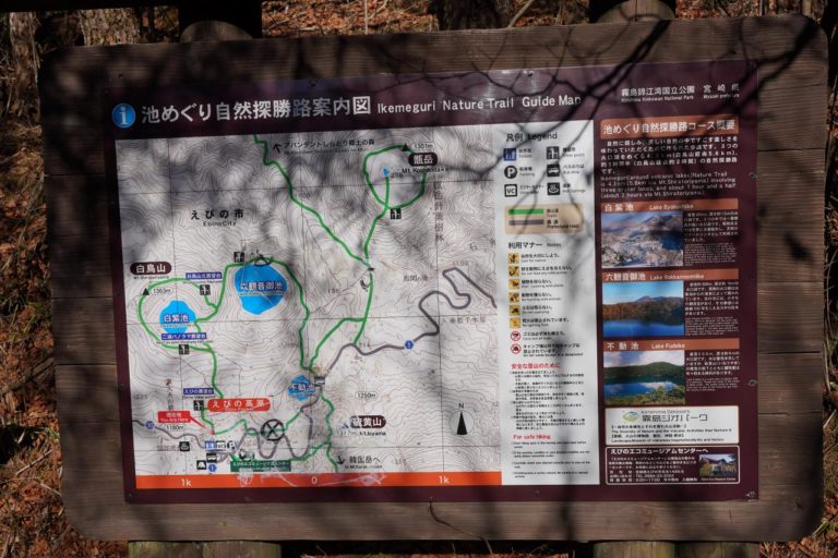 えびの高原の「池めぐり自然探勝路」の案内図。奥まで行くなら一日がかりの長丁場だけど、近くの展望台までなら軽く行って帰れる距離。