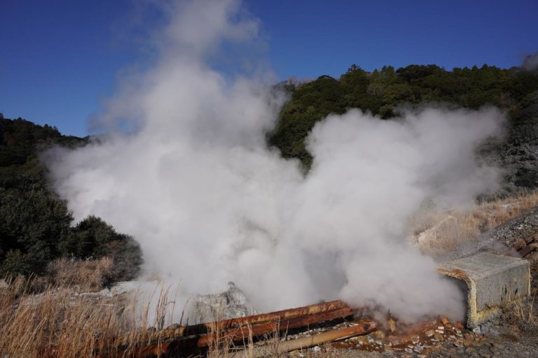 掘った温泉ではなくそこら辺から湧き出ている温泉地の霧島。雲仙のように蒸気が湧き上がっている場所をいくつか見ることができますが、車を停められるスポットがあったので立ち寄り。