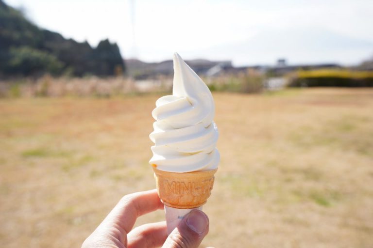 これが黒酢ソフトクリーム。さっきもパンとか食べたので220円のミニを頼んだのだけど、そんなにミニを感じないサイズ感。味は軽く酸味を感じる程度で、雰囲気としては牛乳に柑橘系のジュースを入れて固まった部分を食べてる感じでした。