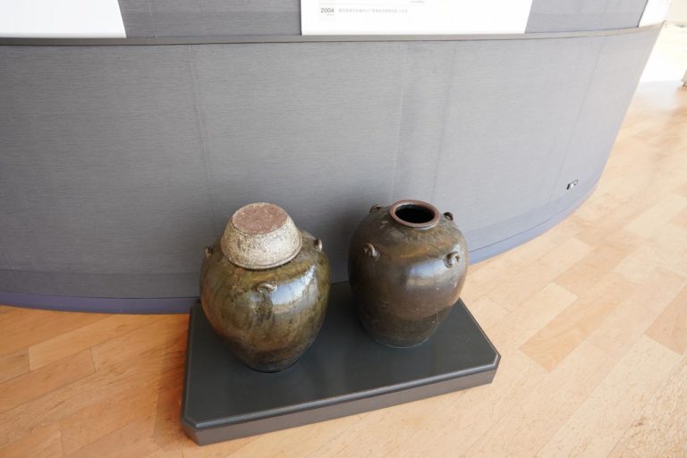 黒酢を作るために使われる壺。ここで1年以上熟成されて黒酢ができあがります。熟成の年数によって色がどんどん濃くなっていき、まろやかさやコクが増えていきます。そしてお値段もその分高く……。