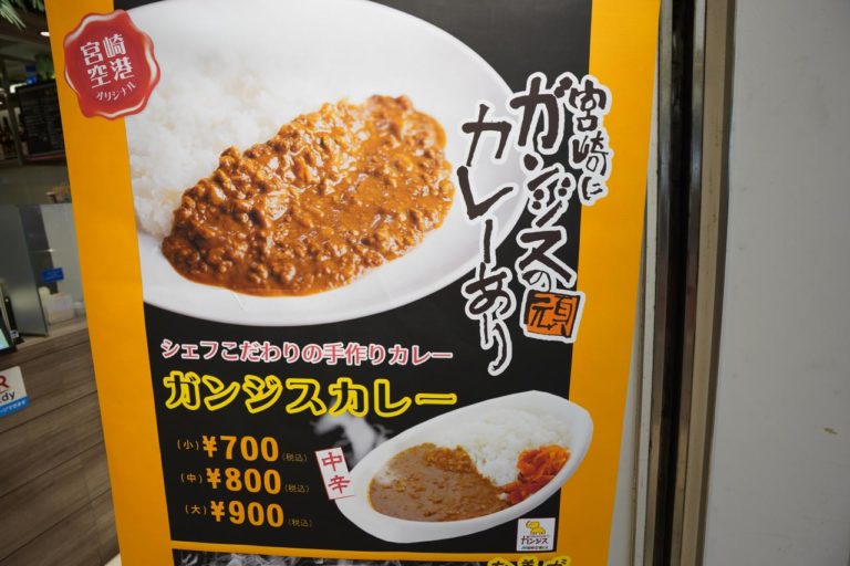 宮崎空港名物のひき肉がたっぷり入ったガンジスカレー。以前来た時には食べられなかったので、今回満を持していただきます。サイズは小中大の3種類で、お値段もリーズナブル。